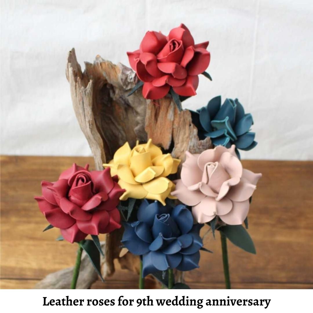 - Leather roses: Not only for the 3rd wedding anniversary but giving leather roses is also an unique way to celebrate your 9th wedding anniversary. A leather rose associated with love, passion, and beauty making them a symbol of affection. By choosing this present, you’re incorporating this timeless symbolism into a modern material.