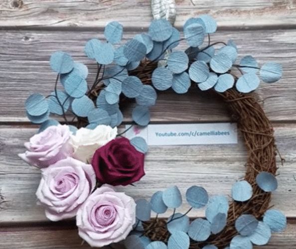 How To Make Paper Flower Wreath With Crepe Paper Roses Step-By-Step