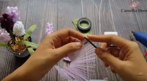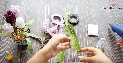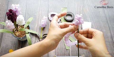 To make the paper hyacinth flower more realistic, here Camelia bees will guide you to make the root very simple as below.
