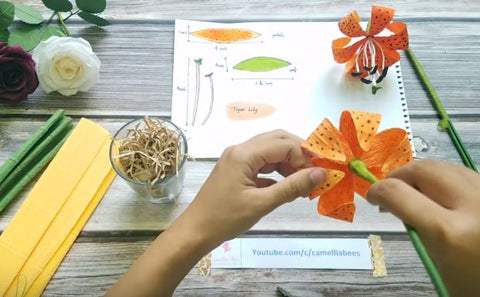 Next, use the blue tape to wrap 6 petals together, finally bend the petals to look the most realistic paper tiger Lily flower.