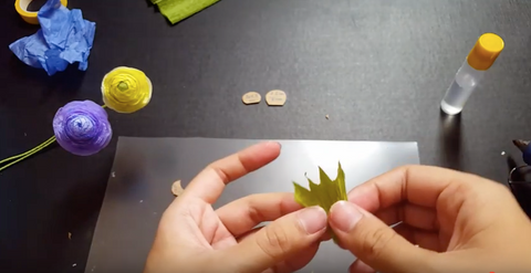Fold the green crepe paper to cut the sepals with the tip to make the sepals. Then paste with hot glue gun that you have completed the beauty Paper Ranunculus flower.